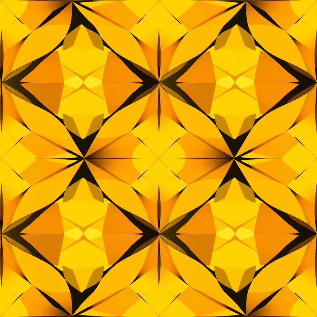 Create a seamless repeating pattern illustration that highlights the interaction of abstract geometric shapes in a monochrome palette, featuring a range of shades from vibrant yellow to deep orange. This design should emphasize complexity and contemporary aesthetics while maintaining a cohesive flow of abstract forms throughout.