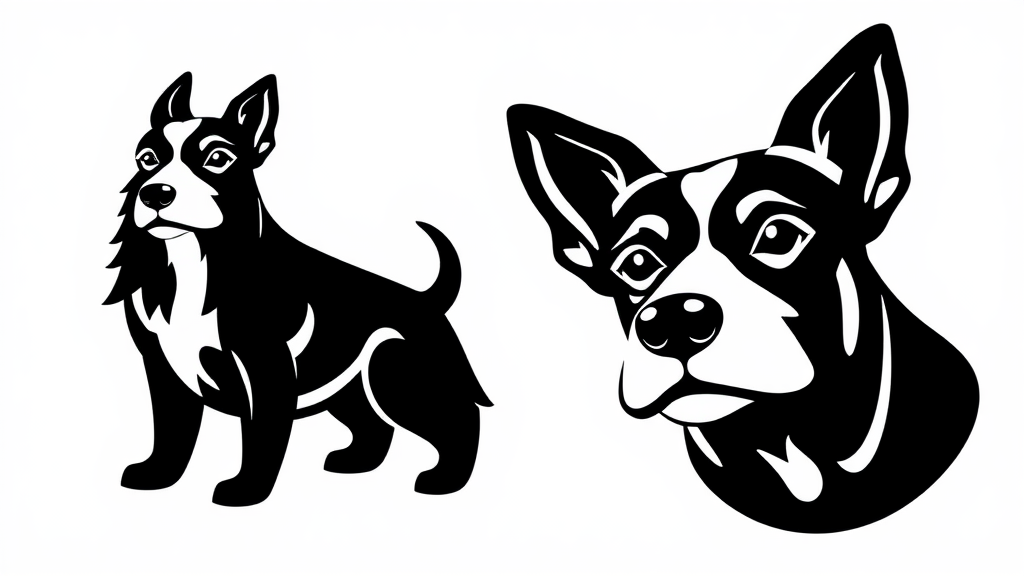 Create a sleek black vector logo featuring a stylized dog with distinctive, memorable features, set against a crisp white background, incorporating subtle geometric elements to add a modern touch.