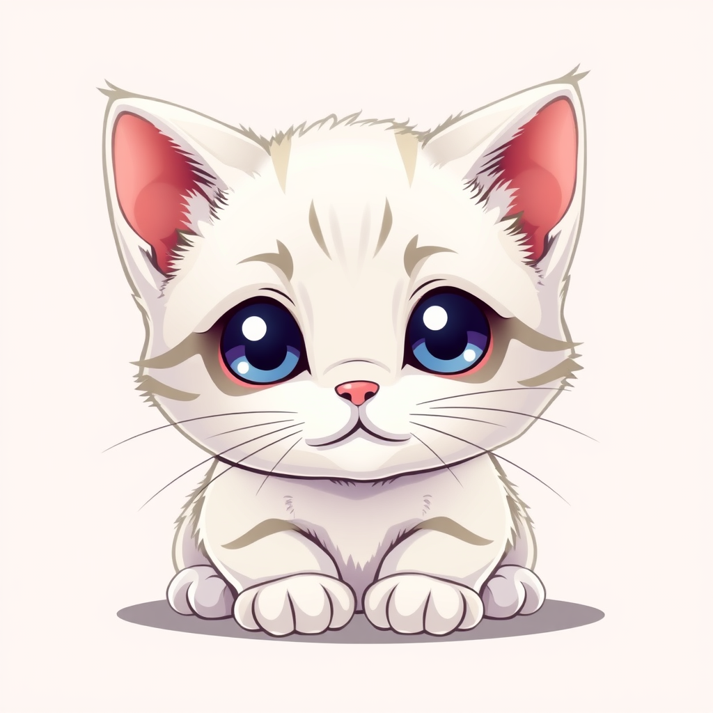 Cute anime-style kitten T-shirt design, colored by Tim White, featuring an endearing and charming expression, set against a soft pastel backdrop, with a clean and polished look, pastel and soft color palette, ratio 1:1.