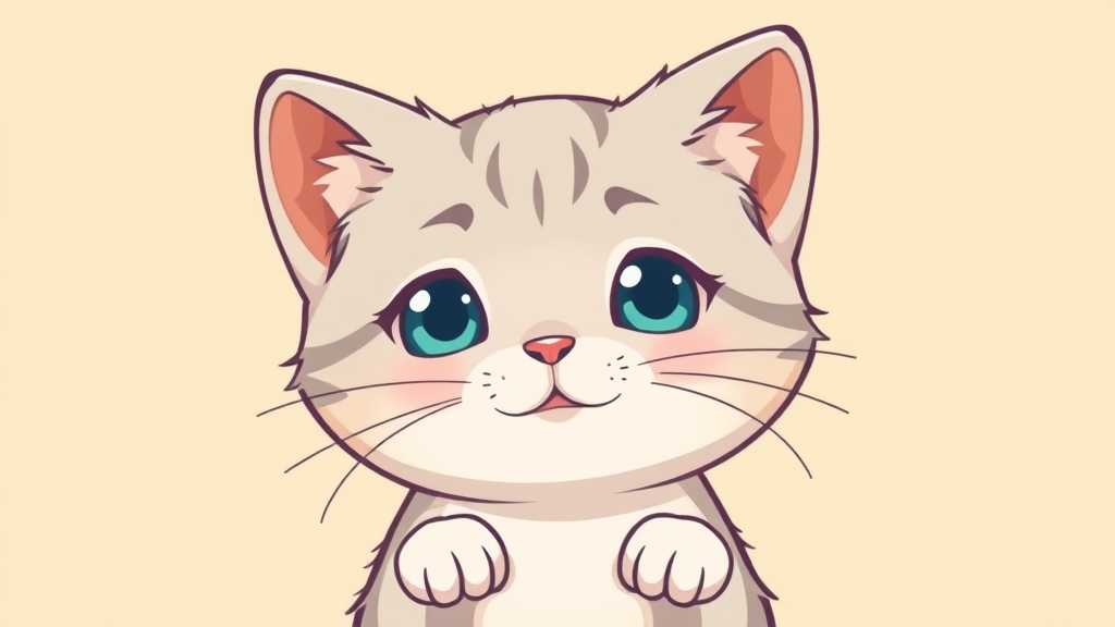 Cute anime-style kitten T-shirt design, vector art, illustrated by Tim White, featuring a charming and adorable expression, soft color palette, with a light golden background, maintaining a raw and clean aesthetic.