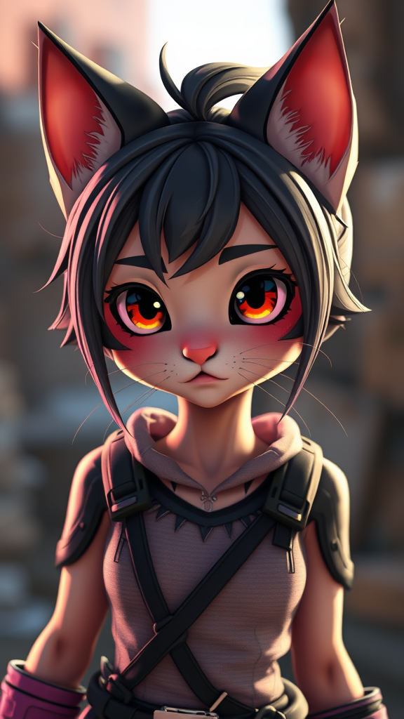 Cute cat girl in the style of Yoji Shinkawa and Guweiz, inspired by Borderlands aesthetics, rendered in Unreal Engine with Octane for depth of field, 8k UHD resolution, and raytracing for cinematic lighting. The scene avoids monochrome and grayscale elements, focusing instead on vibrant, dynamic colors. The composition is free from text, logos, or watermarks and maintains high quality and clarity without any artifacts. The character is designed with accurate anatomy and proportions, ensuring a seamless and coherent appearance with well-drawn features and expressive eyes, emphasizing the character’s playful and curious nature.