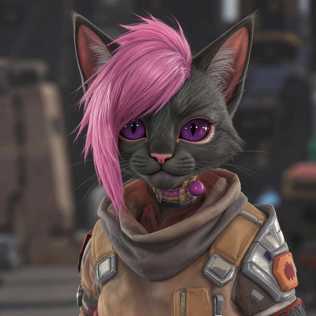 View this AI-generated image featuring cute feline humanoid character illustrated by the fusion of yoji shinkawa and guweiz s styles with the edgy and comic like aesthetic of borderlands rendered using unreal engine and octane render technologies showcasing depth of field 8k ultra high definition cl