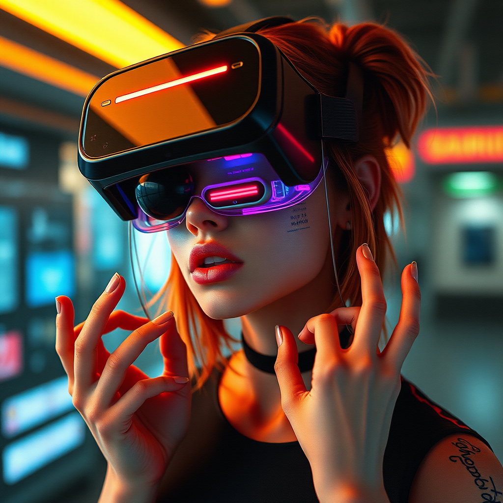 Cyberpunk-inspired female VTuber with a futuristic aesthetic, featuring a virtual reality headset on her face, set in a 4K snthwve style. The scene includes elements of glitch art, such as text errors and visual distortions. Her anatomy is creatively unconventional, with features like irregular fingers, extra digits, and missing elements. The quality varies with intentional flaws like cropping, low resolution artifacts, jpeg compression effects, and an artist's signature. The portrayal challenges traditional beauty, with an experimental design that includes extra limbs and mutated forms, capturing a uniquely deformed and disfigured style, reminiscent of a distorted digital portrait with potential watermarks.