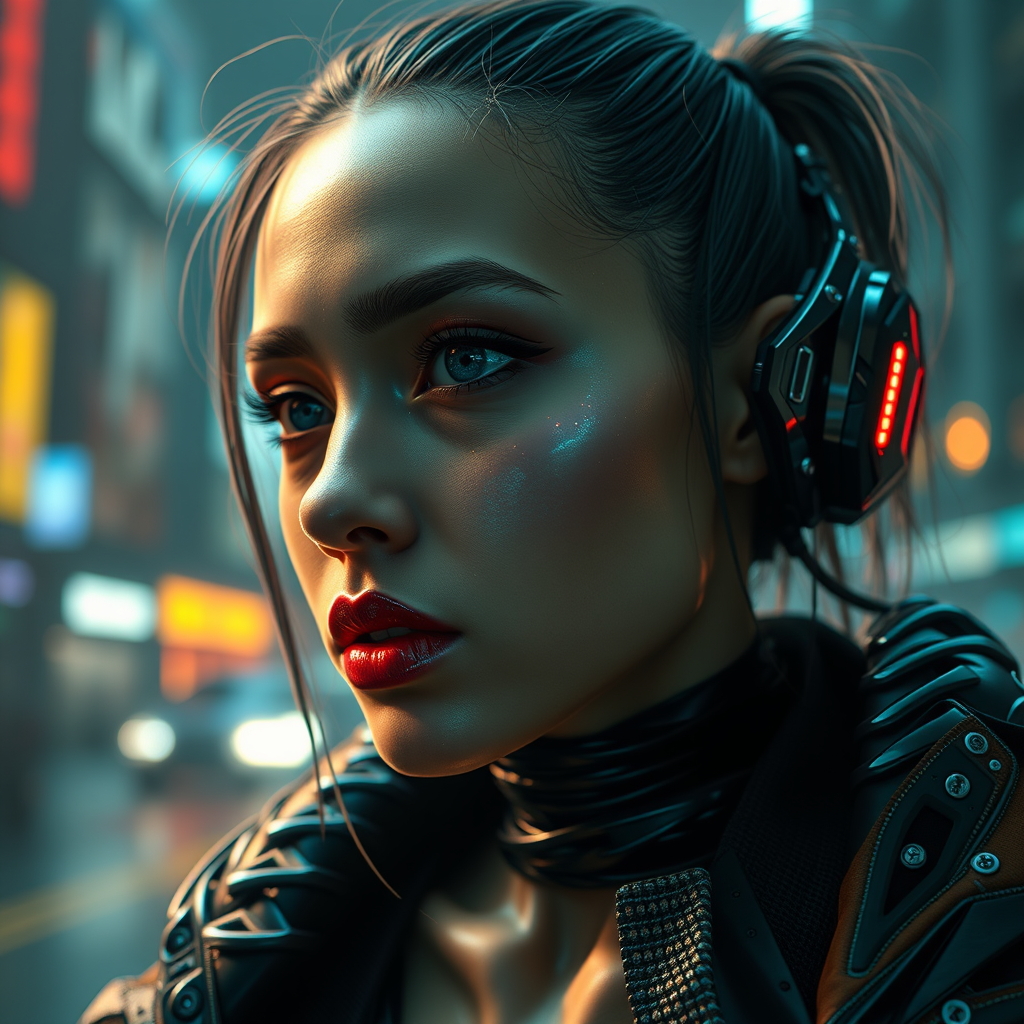 Cyberpunk portrait art, ultra-high resolution, 8k, featuring lens flares and atmospheric glow, intricate details, vibrant colors, cinematic lighting, popular on art platforms, hyperrealistic and sharply focused, embracing extreme detail, rendered in Unreal Engine 5, a true cinematic masterpiece with luminous reflections, photographic quality in a stunning environment, merging elements of hyperrealism with CGI, featuring a futuristic car accent, 3D design, with touches of octane rendering, occasionally showcasing unconventional anatomy for artistic flair, with elements like extra limbs or fingers for surreal effect, creating a disfigured, mutated aesthetic, reminiscent of dreamlike tiling patterns.
