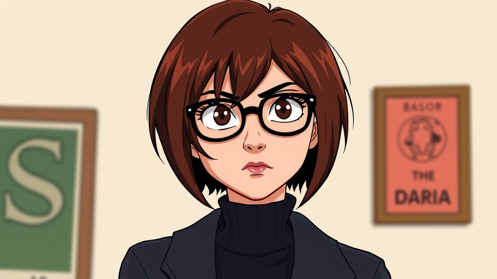 Daria Morgendorffer, the intriguing protagonist of the animated series Daria, with a serious yet captivating expression, exudes sultry allure and an enviable confidence. Her intelligent gaze magnified by her iconic eyeglasses adds to her unique charm. Radiating a striking beauty and charismatic presence, she's effortlessly mesmerizing with her gorgeous silhouette and intriguing features, an embodiment of captivating complexity in life-size form.