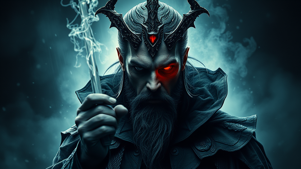 dark sorcerer, portrait, elaborate, intricate detailing, dramatic volumetric lighting, cinematic atmosphere, compelling composition, high contrast elements, matte painting style, rich textures, mysterious and foreboding ambiance