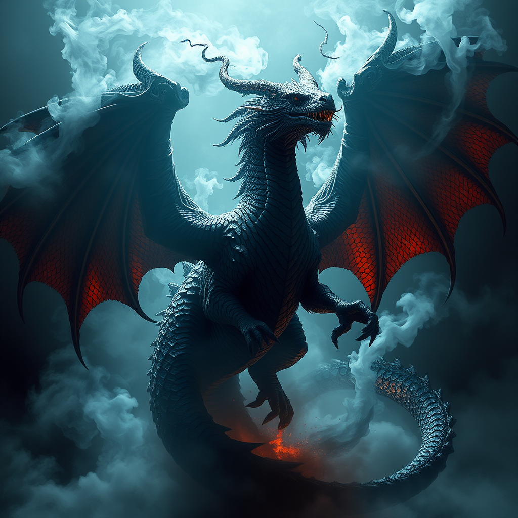 Darkness enchanting sovereign-formed colossal dragon adorned with scale-adorned wings, Magic the Gathering style, swirling in ethereal smoke amidst shadowed misty backdrop, inspired by the works of Andrei Riabovitchev, Massimo Caggese, Peter Mohrbacher, featuring ominous intricate designs, rendered in octane, influenced by Moebius and Arney Freytag, striking a stunning pose, designed for ArtStation, exhibiting flawless composition, with dramatic lighting and shadows, infused with orthodox symbolism, serving as concept art, alive with ambient magic realism, in ultra-high-definition 8k resolution, showcasing an exceedingly complex hyper-maximalist detailed cinematic tribal dark fantasy essence.