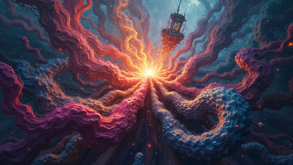 A mesmerizing and intricately detailed masterpiece showcasing a dynamic composition filled with captivating lighting and vivid, vibrant colors. The execution is flawless, captured in high resolution, delivering a stunning visual experience.