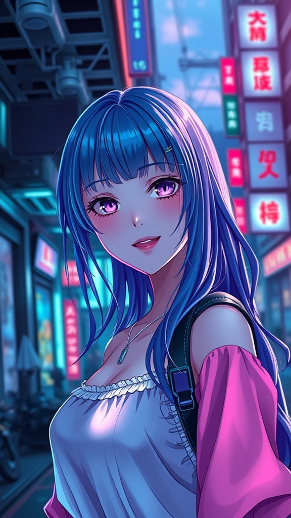 Digital anime girls HD desktop wallpapers, depicted in neon realism and postmodern portraiture, set against layered street scenes with a touch of precisionist art. Infused with gadgetpunk elements, these eerily realistic compositions blend fine art realism. Captured using Fujifilm X-T4 and Sony FE 85mm f/1.4 GM lenses, emphasizing high quality and resolution. The art style leans toward raw realism and is tuned for a 3:4 aspect ratio, providing a captivating, immersive experience with subtle creative twists.