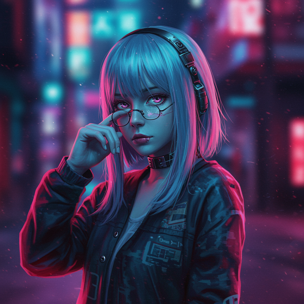Digital anime girls HD desktop wallpapers, in the style of neon realism and postmodern portraiture, featuring layered urban street scenes, precisionist art vibes, and gadgetpunk elements. The images are eerily realistic with fine art realism, capturing the essence with a Fujifilm X-T4 and Sony FE 85mm f/1.4 GM lens. Vivid compositions with cinematic quality, exploring a 3:4 aspect ratio, maintaining a raw aesthetic while embracing a futuristic vision.