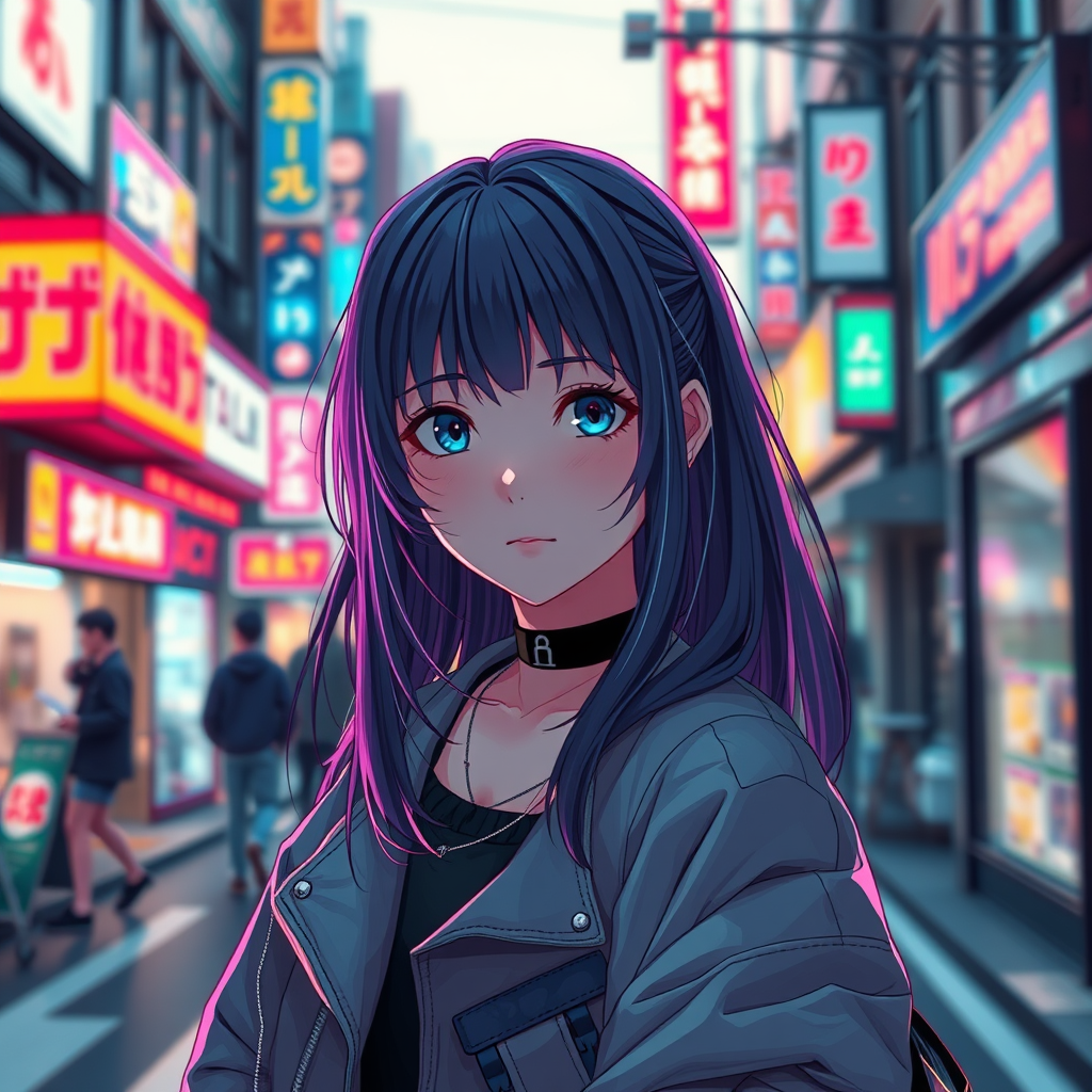 Digital anime girls in HD desktop wallpapers, infused with neon realism and postmodern portraiture, set against layered street scenes. The art features precisionist details and gadgetpunk aesthetics, exuding an eerily realistic quality. Captured in fine art realism, akin to a Fujifilm X-T4 paired with a Sony FE 85mm f/1.4 GM lens. The composition maintains an aspect ratio of 3:4, with a raw and vivid style, emphasizing depth and clarity.