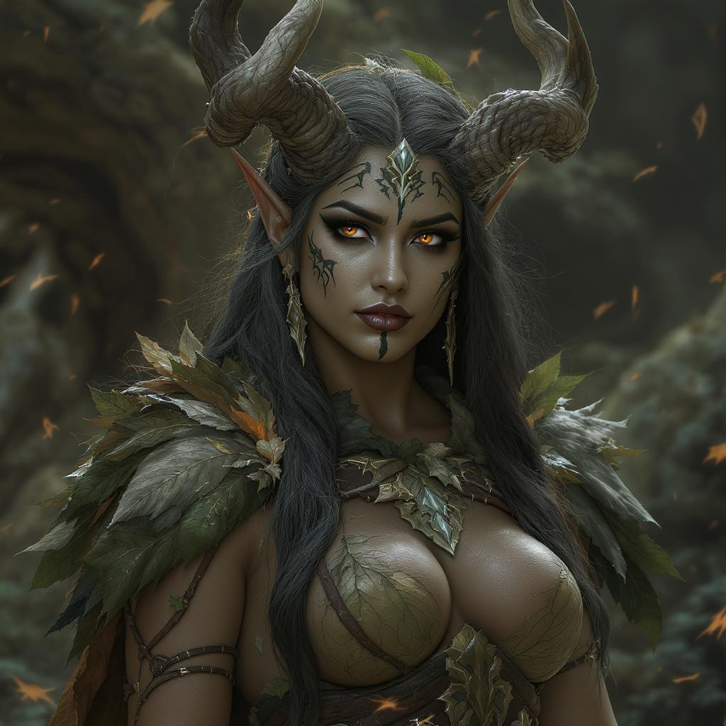View this AI-generated image featuring an ultra quality digital art concept featuring a druid set in a fantasy world designed as a profile picture the character is adorned in garments made of leaves and has intricate face tattoo markings the scene is illuminated with cinematic lighting enhancing the