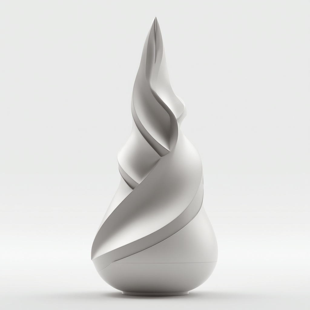 A hyper-realistic digital art depiction of an aroma diffuser inspired by the sleek, modern, geometric architecture of the Burj Khalifa in Dubai, featuring an alluring metallic exterior with elegant, flowing lines that echo the tower's iconic silhouette, presented on a pristine white background. The design incorporates subtle textures and reflections, achieving a harmonious blend of sharp angles and smooth curves. Rendered in stunning 8K resolution using Unreal Engine, the image captures intricate details with a sophisticated depth of field effect, creating a sense of tangible realism, stylishly merging futuristic aesthetics with timeless design.