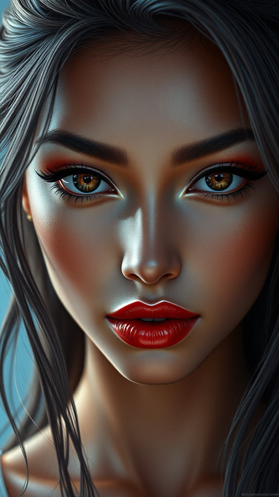 Digital painting of model Jasmine Tookes as an anime character, high resolution HDR unreal engine hyperdetailed sharp focus, trending on ArtStation DeviantArt Yasutomo Oka Jovana Rikalo Audrey Kawasaki Josephine Wall Thomas Kinkaid, masterpiece, best quality, official art, extremely detailed CG unity 8k wallpaper, a woman, highly detailed eyes, perfect eyes, both eyes are the same, detailed black pupils, smooth, perfect face, perfect lips, feminine, proportioned body, relaxed, captivating gaze, iridescent, realistic hair movement, realistic light and shadow, masterpiece, ultra quality, insanely detailed, octane render, beautiful composition, intricate, dreamlike poses, award-winning photograph, woman, adult, cyberpunk 2077, Blade Runner, Fifth Element-inspired, mature elegance, deep red lips, enigmatic smirk, expressive nasolabial folds, poised look, high detailed face, merging themes of futuristic allure and timeless beauty.