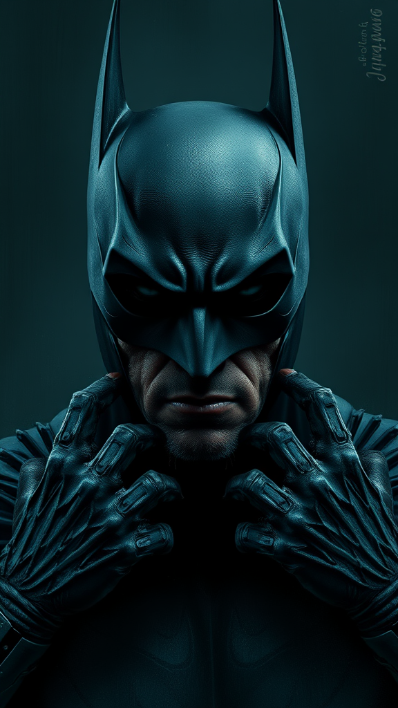 digital wallpaper portrait of batman, dark knight, inspired by comic style, 8k resolution, rough texture, reminiscent of marvel comics, desperate and intense expression, dark and moody background, with muted color palette, epic and dramatic composition, emotionally profound and intricately detailed digital painting, presence of text, low quality, exhibiting jpeg artifacts, distorted and duplicate features, morbid and mutilated appearance, with poorly drawn hands and facial features, mutations and deformations, blurred elements, dehydrated look, flawed anatomy with bad proportions, presence of extra or missing limbs, cloned and disfigured face, with gross and malformed proportions, a sense of incompleteness with missing or extra parts, unusually long neck, hints of camera or photographic references, elements suggesting name, signature, or watermark, with cut-off or censored aspects, creating an overall unsettling and distorted approach in depiction.