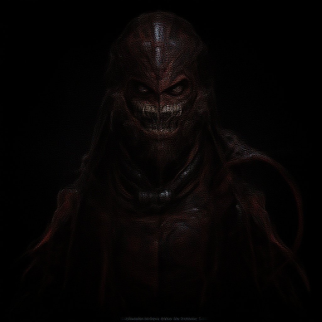 digital wallpaper portrait of brutal cyborg samurai supervillain, anime-inspired, in the style of comics, 8k quality, resembling marvel comics, dark backdrop, muted color palette, epic and dramatic composition, digitally painted with emotional depth, intricate design, text elements, intentionally showcasing flaws like low quality, jpeg artifacts, and duplications; portraying a morbid and deformed figure with poorly drawn features like hands and face, evidenced by mutations and blurry details. The figure displays an unusual anatomy with disproportionate limbs, extra or missing arms and legs, resulting in a disfigured silhouette with gross proportions. Features like a long neck, various camera angles, and unintended elements including a name, signature, watermark, or logo are present. This creation emphasizes bad anatomy and distorted body features, producing an unsettling and unique visual experience.