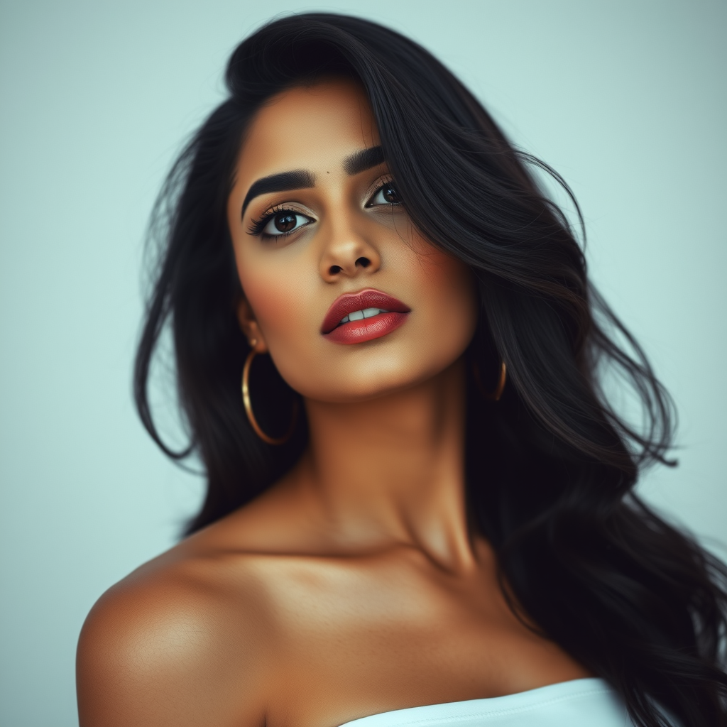Disha Patani, Bollywood icon, portrayed in a style merging Franz West's abstract influence with Guillaume Seignac's smooth elegance, presented in a close-up webcam photography aesthetic. Featuring a palette of light white and light black, using a double-tone effect to enhance contrast and depth, capturing her beauty with an artful, stylized flair and an elongated aspect ratio of 1:2.