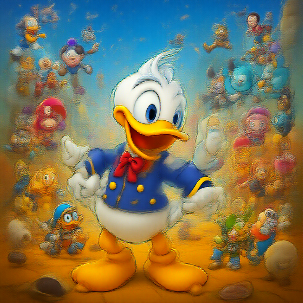 Donald Duck stumbles into a vibrant metaverse, where he becomes an unexpected NFT sensation, encountering comical digital escapades in breathtaking ultra HD, 4K, with all the charm and humor of classic Disney animation.