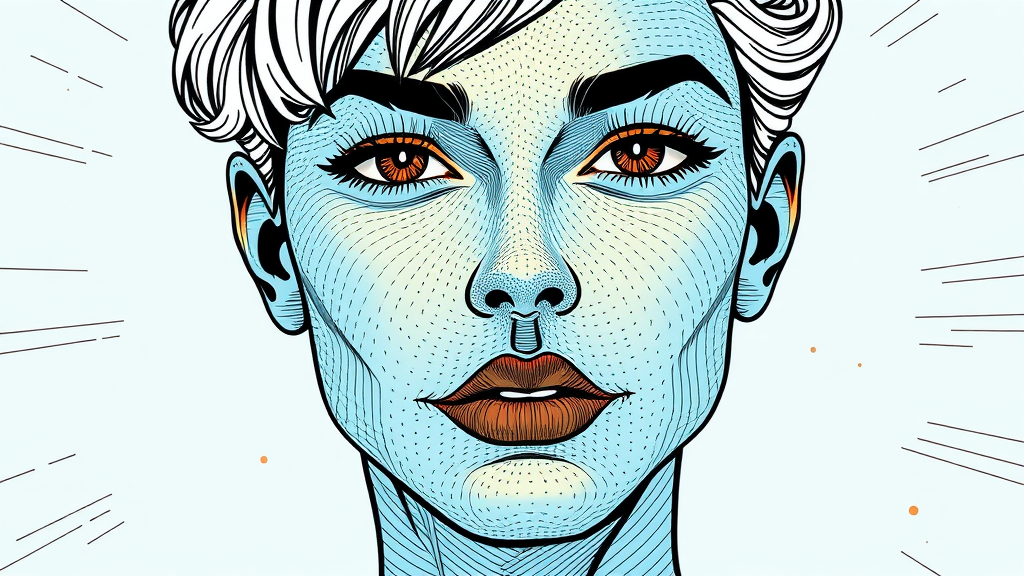 Doodle art 3D in a pop art-inspired portrait style, featuring interference patterns with a light sky-blue and bronze color palette. Incorporate realistic hyper-detail with engraved line-work, reminiscent of a graphic novel aesthetic, emphasizing a vertical composition ratio of 63:128. Add creative nuances to heighten visual interest, while maintaining the essence of the original design concept.