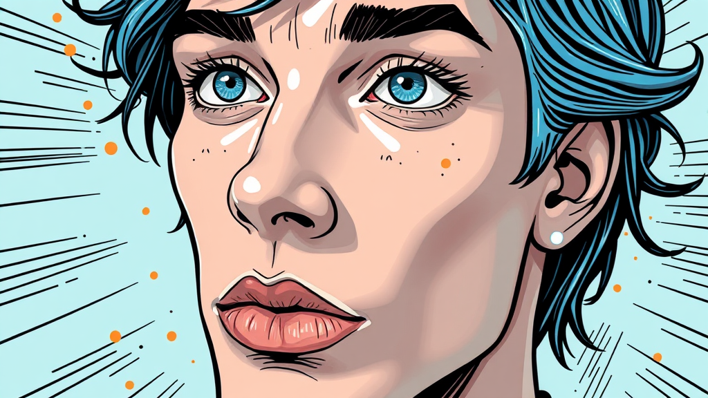 Doodle art 3D portrait with a pop art flair, featuring interference patterns and a palette of light sky-blue and bronze. Emphasize realistic hyper-detail and engraved line-work, capturing the essence of a graphic novel. Adjust for an elongated 63:128 aspect ratio and infuse a stylized touch for a dynamic visual experience.