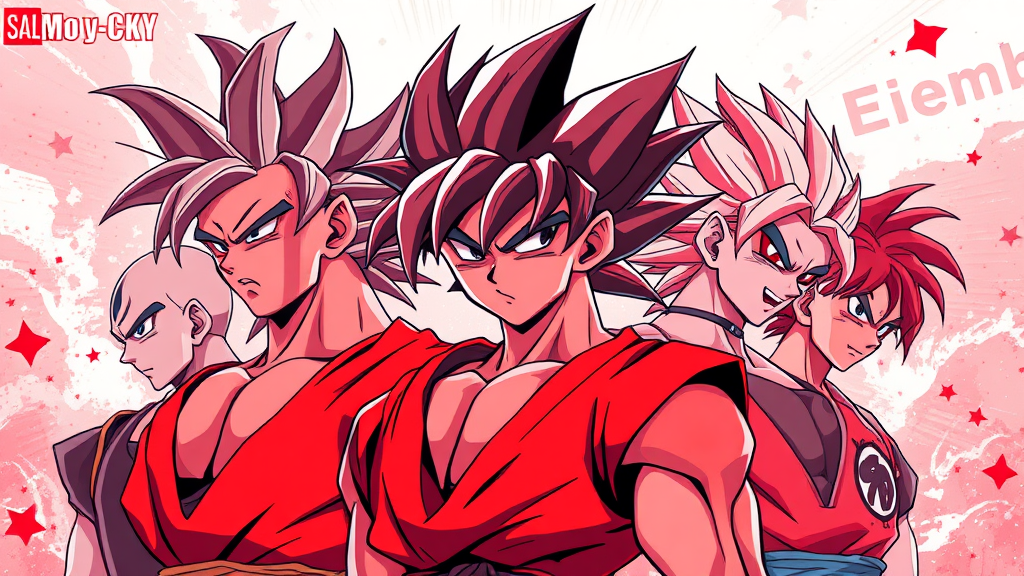 Dragon ball artwork featuring charming anime characters, rendered in a solarization effect with a palette of dark red and gray, ultra-high-definition image with dark silver and sky-blue accents, heavy shading to enhance depth, portraying handsome characters in a dynamic and captivating composition.
