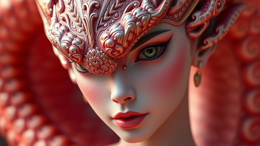 Dragon portrait, graceful female, smooth and refined features, rendered in 3D with hyper realistic detail, 4k ultra HD quality, created using Maya and ZBrush, photorealistic and lifelike, animated style capturing an elegant movie presence, close-up headshot, isolated with no background, resembling a cinematic movie scene, aspect ratio of 9:16.