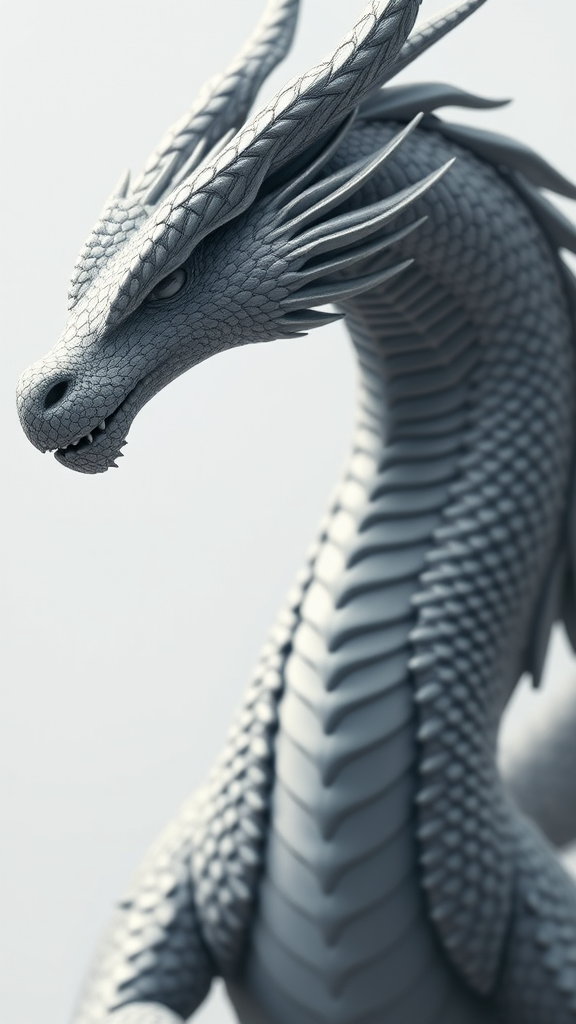Dragoness, graceful and streamlined, intricately detailed in 3D, captured in stunning 4k HD. Crafted using Maya and ZBrush for a hyper-realistic, life-like appearance. This portrait showcases a headshot with no background, resembling a cinematic movie scene with breathtaking realism and elegance. The aspect ratio is 9:16, capturing the essence of a timeless movie still.