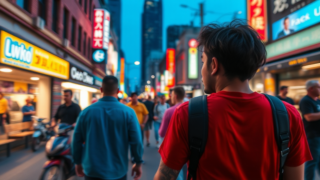 "Drawing inspiration from the rhythm of city streets, create a visual narrative that captures the vibrant energy of urban life, blending everyday interactions with unexpected bursts of color and movement."