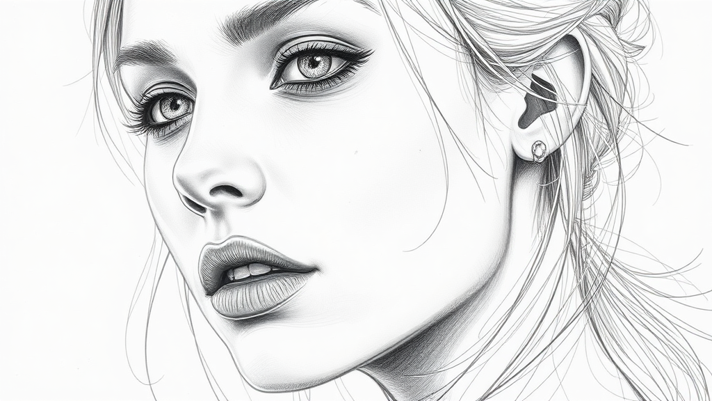 Drawing of a woman, inspired by the styles of Kieron Gillen and Augustus John, featuring light gray tones and intense close-ups. The composition evokes a sense of awe in its beauty, with a bold use of line reminiscent of Clayton Crain's technique. The piece captures an extraordinary elegance and emotion, utilizing a unique aspect ratio of 73:109 to enhance its visual impact, and exhibits a highly stylized approach.
