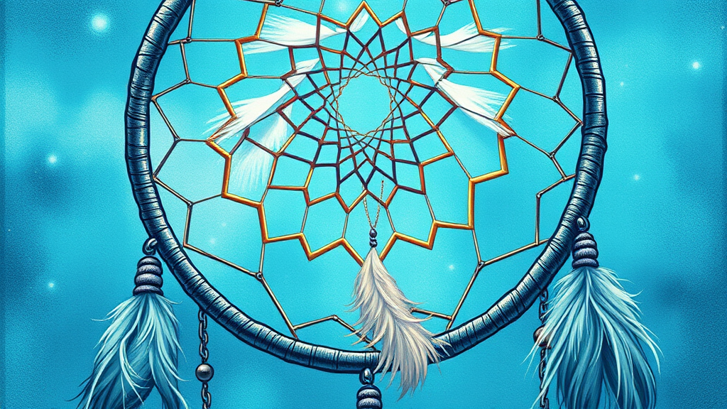 Dream Catcher infused with crisp neo-pop illustrations, ethereal sky-blue tones, nightcore ambiance, and trompe-l'œil illusionism, textured with detailed penciling, creating a reflective and pensive portraiture, enhanced with subtle animated elements, capturing a sense of wonder --ar 35:64 --stylize 750 --v 6.
