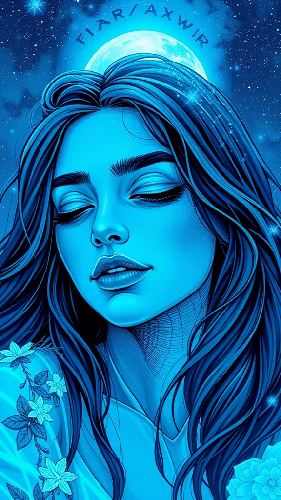 Dream Weaver, crafted in a crisp neo-pop art style, infused with sky-blue hues, nightcore vibes, featuring trompe-l'œil illusionistic elements, intricate penciling, reflective portraiture, dynamic animated loops, capturing the ethereal essence --ar 35:64 --stylize 750 --v 6.