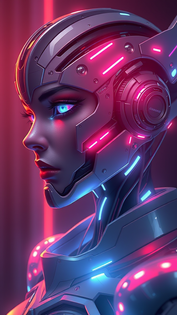 dreamlike digital art digital painting anime portrait futuristic military cyborg cyberpunk warframe stealth armored neon ambiance character design sleek surfaces smooth detailed face highly intricate symmetrical volumetric lighting ambient glow realtime visual effects digital 3d ultra-high-definition hdr side profile dynamic composition atmospheric details enchanting colors defining edges with surreal light captivating elements out of frame distorted yet intriguing proportions less conventional design unique anatomy elegantly strange elongated neck enigmatic presence subtly cropped inventive exploration