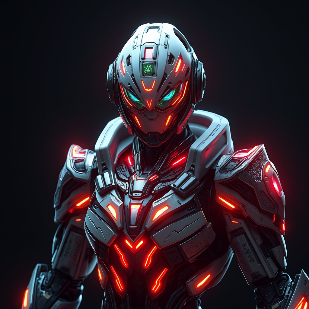 dreamlikeart 3d render futuristic combat cyborg cyberpunk-inspired design warframe-style stealth unit layered armor neon illumination character concept hard-surface modeling smooth texture detailed facial features high-resolution intricacy symmetrical design volumetric and ambient lighting effects real-time vfx digital 3d rendering ultra-high-definition hdr elements subtle distortions exaggerated anatomy lengthened limbs and neck cropped perspective with cartoonish and anime influences digital painting style