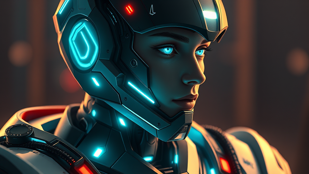 dreamlikeart digital art digital painting anime portrait of futuristic military cyborg cyberpunk warframe stealth armored neon lights character design hard surface smooth detailed face highly detailed intricate details symmetrical volumetric lighting ambient light real-time vfx digital 3d uhd hdr 3d side profile dynamic lights unique features innovative armor design luminescent accents enhanced realism cinematic aesthetics precision detailing avant-garde approach elegant proportions refined symmetry stunning visuals modern elements bold concept awe-inspiring atmosphere visionary style