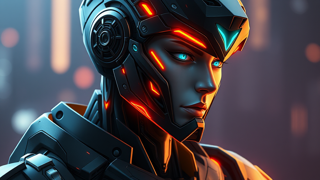 dreamlikeart digital painting anime portrait of advanced military cyborg cyberpunk warframe stealth armored neon accents character design hard surface sleek detailed face highly intricate symmetrical volumetric lighting ambient glow real-time vfx digital 3d uhd hdr side profile dynamic composition captivating precise anatomy unique proportions gracefully extended neck thoughtfully framed