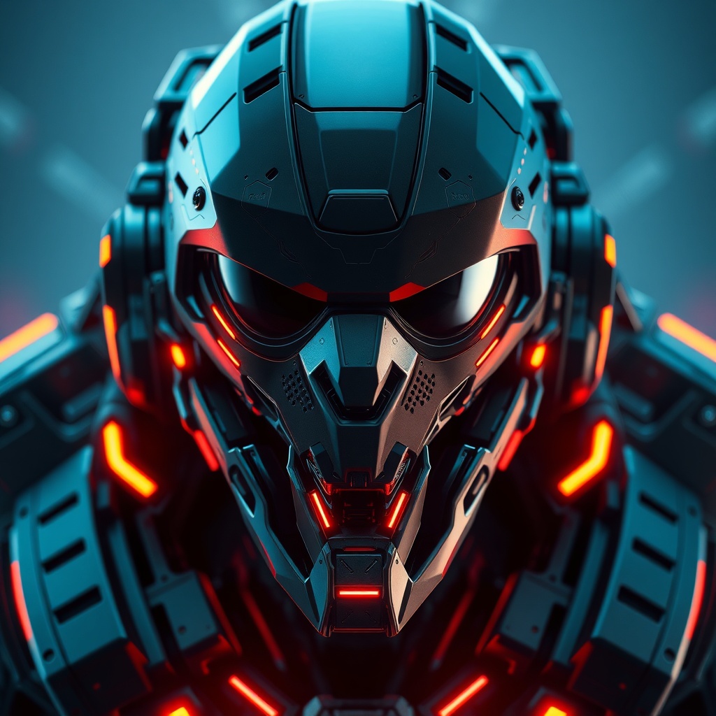 View this AI-generated image featuring dreamlikevision 3d render of advanced military android cybernetic futurism stealth operative armored with neon accents character design smooth surfaces intricately detailed visage symmetrical composition volumetric and ambient lighting real time vfx effects dig