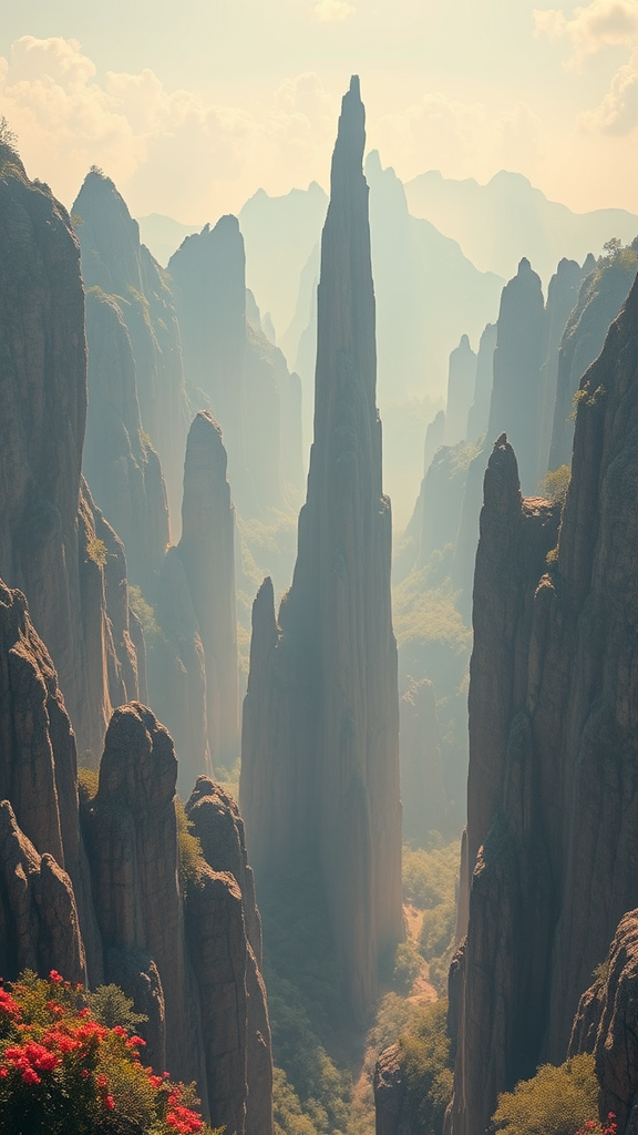 Dreamscape Elegance surreal towering landscapes slender, elongated forms ethereal figures entwined delicate shadows vibrant hues intricate patterns float serene dreamlike tranquility surrealism elevated harmony enchanting simplicity vibrant surrealist dream
