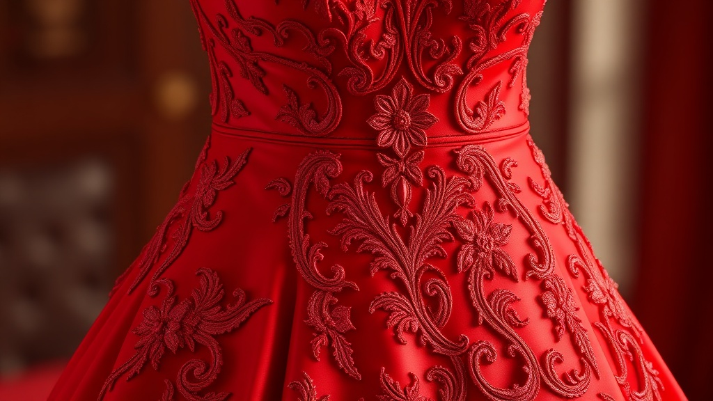 A red dress captivates as a mesmerizing masterpiece, drawing immediate admiration. This stunning garment, crafted from the finest materials, showcases intricate details embodying elegance and sophistication. Its vivid, rich red hue exudes power and confidence, making it truly unforgettable. The ensemble, showcased in a 3D CGI render, highlights the impeccable artistry involved. Despite the intention for perfection, the render bears slight imperfections, such as occasional blurriness and odd proportions, adding a unique character to the overall image. These minor anomalies, while unexpected, underscore the digital creation process, juxtaposing beauty with the challenges of crafting a virtual vision.