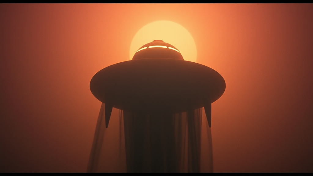 DVD snapshot, 1988 sci-fi classic, true 35mm film texture, live action featuring a shadowy futuristic ghost UFO, timeless exploration and quest for knowledge, captured with Hasselblad H6D-100c, XCD 85mm f/1.8 lens, heightened unpredictability, perfect 3:4 aspect ratio, raw aesthetic, utilizing profile 5irq8vw, artistic flair at maximum, version 6.1.