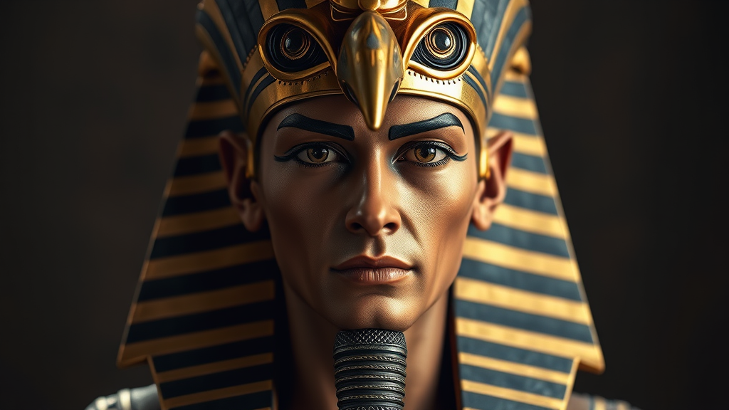 Egyptian deity Horus, falcon-headed, human figure, majestic stature, exuding elegance and wisdom, stunningly beautiful with a masculine presence, mature and dignified, intricately detailed, photorealistic depiction with cinematic lighting enhancing every feature.