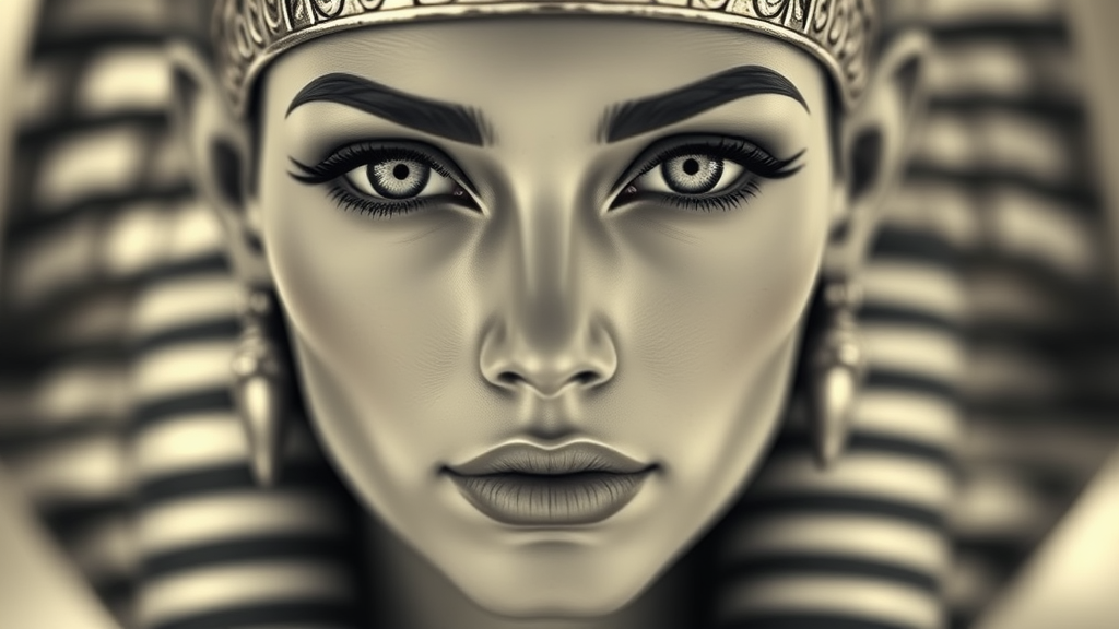 Egyptian Goddess Isis ::5 Premium Portrait Photography::4 high-definition, sharply-focused, high-quality, artistic, distinctive, award-winning image, Canon EOS 5D Mark IV DSLR, f/8, ISO 100, 1/250 second, intimate close-up, natural illumination, professional, elegant, headshot, glibatree-inspired style::3 monochrome, textured, abstract, signature::-2.