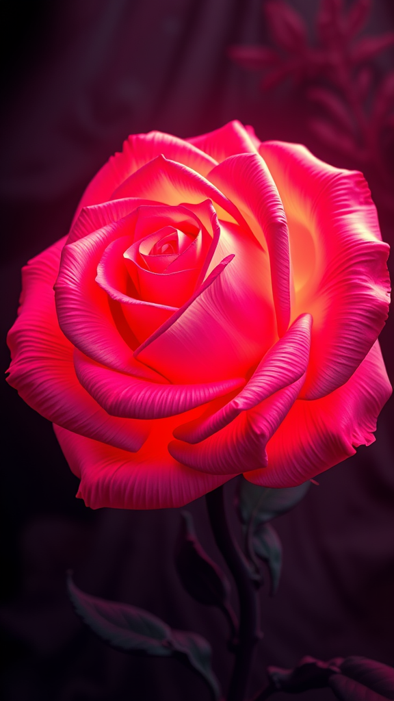 elaborate rose, luminescent neon, finely detailed, hyper realistic, three-dimensional