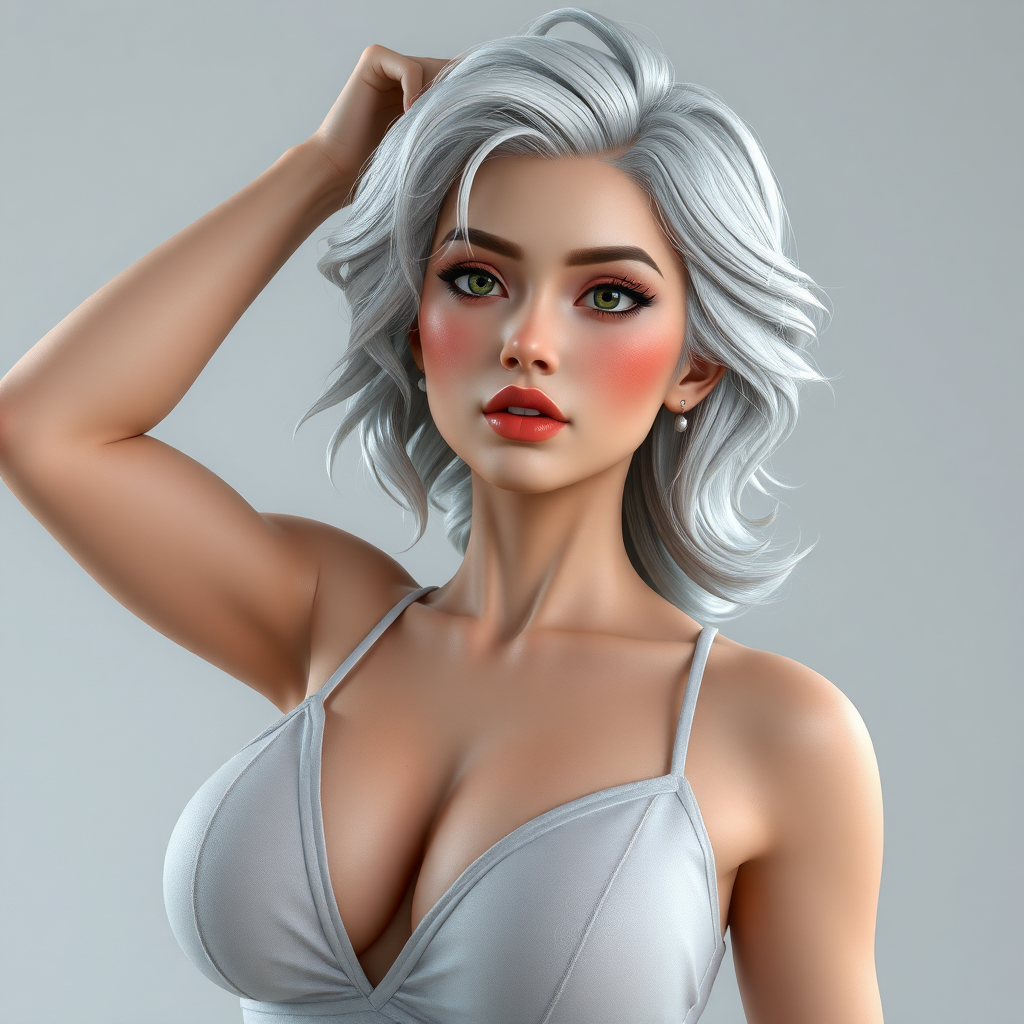 Elderly beauty, striking dynamic pose, anime muse with alluring charisma, curvaceous and fit physique, stunningly perfect facial features, crafted in the style of realistic and highly detailed renderings, endearing with a touch of kawaii charm, meticulously designed with zbrush, hyper-realistic oil textures, and expert contoured shading accents.