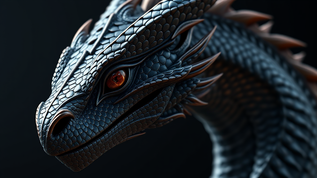 Elegant and sleek female dragon, 3D, rendered in 4k HD with Maya and ZBrush, hyper realistic and photo realistic animation, detailed portrait head shot, no background, resembling a cinematic movie still in a vertical 9:16 aspect ratio, with subtle creative touches highlighting intricate scale patterns and mesmerizing eyes, capturing a captivating scene frozen in time.