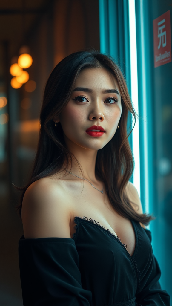 Elegant Korean woman, K-pop star, stunning portrait, dramatic illumination, high-detail professional photograph, true-to-life, ultra-high resolution, physics-based rendering, photographic masterpiece, exceptional realism, high contrast, 8k HD, hyper-detailed, premium quality, f1.6 lens, vibrant colors, cinematic lighting, inspired by film, enhanced negatives, refined art techniques, digital clarity, CGI-inspired, cartoon aesthetics, anime-inspired elements, artistic illustration, digital sketch, low resolution avoided, maintaining high quality, focused clarity, avoiding distortions, precisely drawn features, clear depiction, accurate face portrayal, flawless composition, subtle modifications, maintaining core essence, authentic representation.