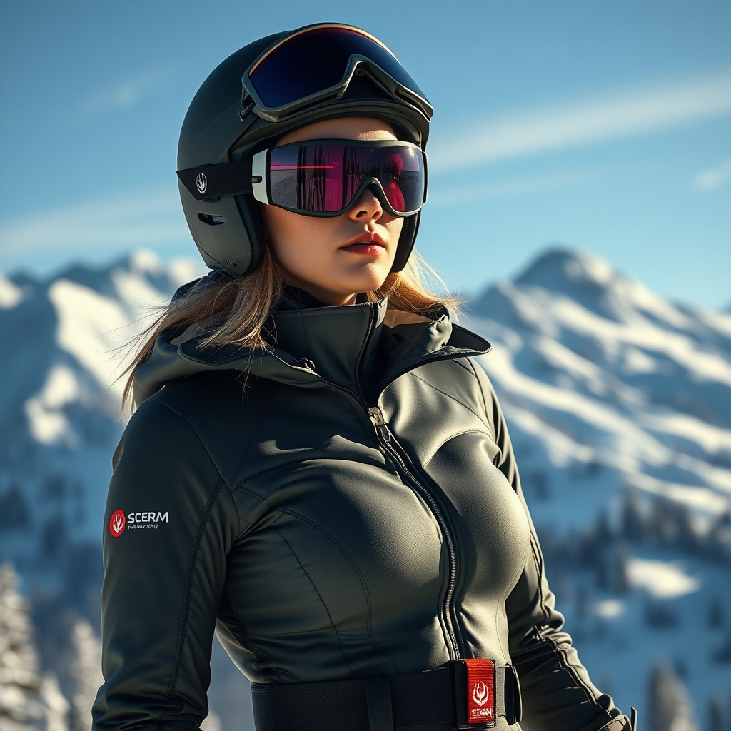 Elle Fanning, woman in a form-fitting ski suit, set against a backdrop of snowy mountains, inspired by the art of WLOP, Artgerm, Peter Mohrbacher, and Krenz Cushart. Captivating natural and volumetric lighting enhances the scene, featuring a contemporary twist on Sunday ski fashion. The composition boasts a vibrant color palette, exuding an Avant Garde essence. It is a beautiful and elegant masterpiece, rich with intricate details and smooth shading, capturing the essence of modern ski style with artistic flair.