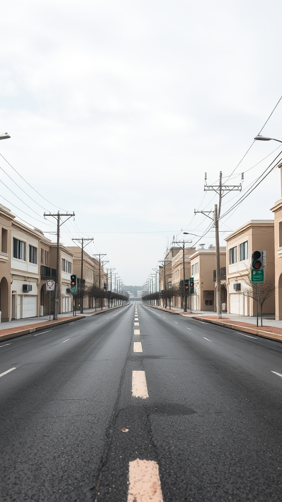 Empty streets, void of life, only hollow suits laid out horizontally under the pale sky.