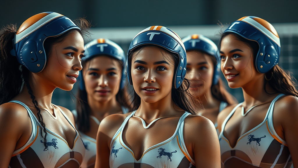 Enchanting athletes dressed as volleyball players, captivating, engaging with the viewer, vivid photography, detailed skin texture, lifelike, photo-realistic, 8k resolution, intricately detailed, full-length capture, high fidelity RAW colors, soft diffused lighting, shallow depth of field, sharp clarity, hyperrealism, cinematic lighting, CGI influence, smooth focus, artistic touch, full frame, precise composition, visual harmony, elegance, authenticity.
