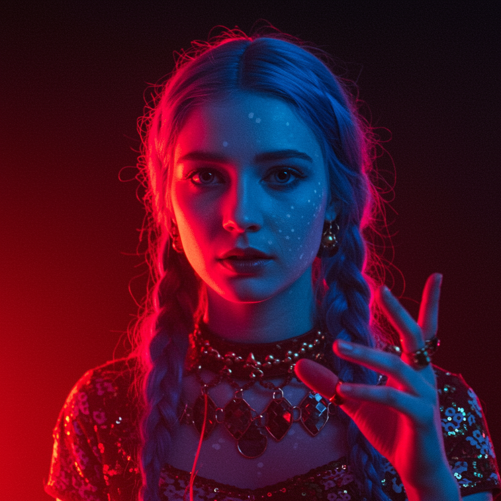 The azure enchantress adorned in a vibrantly colorful ensemble, illuminated in the signature style of Brandon Woelfel, reflecting the artistic flair of Becky Cloonan; an ultra-high-definition experience capturing radiant hues of crimson and vermilion within ethereal lightscapes, reminiscent of Tanya Shatseva's surreal close-ups, shot with the precision of a Fujifilm X-T4 paired with a Sony FE 85mm f/1.4 GM lens, maintaining a cinematic 45:56 aspect ratio, a rich texture with quality set to 2, a dynamic score of 750, embracing a raw and authentic aesthetic with a touch of v5.1 innovation.