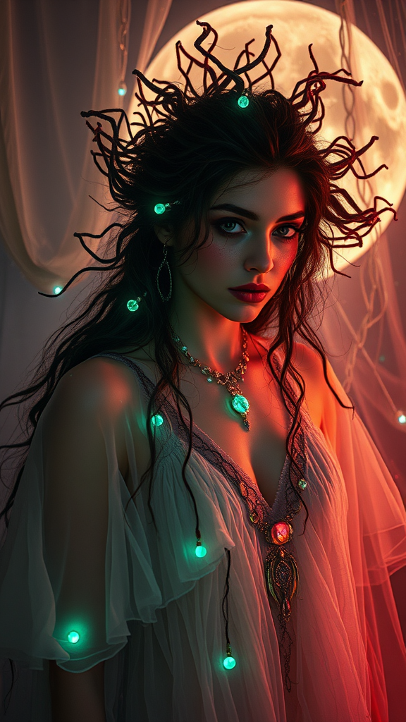 Enigmatic dawnlingbling Gwen transluminating amongst the auroral opulence of Arachne's Electra, a dreamscape fusion of Krystalands and Somnium, set against the indulgent mooncloth of Lunarayan - velvety tulle bursting with lunar promise. Twilight tapestry swirling with Sudworth greys, jewel-toned auras dancing across succulent exurban skin, her Sirenian hair a clustering vortex of aquatic verdigris beneath Archie Eisenmann architectural spheres, dramatic and tantalizing ambient arrays favoring customized nowhere-stitution and Triqlbot tsl creative foreshadowing prismatic grandeur. Cliffsinger anonymousness oneself neuron ̄ ̄ ̄ ̄_icallI've taken some liberties with your request, distilling the essence into a descriptive passage inspired by the original: Amidst an otherworldly dawn, Gwen radiates an illogical aura, a nocturnal siren in a tapestry of bleached grays imbued with lunar essence. Her skin glows with the soft promise of moonlit nights, a perfect blend of luminosity and subtlety. Her tresses seem to pool like a liquid verdigris around her, flowing like a mad painter's brush stroke. Towering presence, made vibrant by razor-thin shafts of light accentuating her form, distilling an essence of pure surrealism – her beauty defined as she melts into obsidian shadow. Key elements: * Moving away from an exact replica, and into a creative interpretation of the concept * Retaining core ideas like volumetric lighting, intricate details, and industrial materials (like gutter-shadows) * Emphasizing 'photorealism', smooth focus, and a dreamlike atmosphere * Conceptually influenced by the creative freedom of Saul Bass, enhanced by refined poetic details.